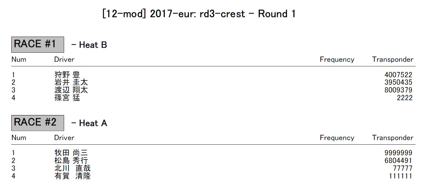 1/12ユーロモディファイ(6.5T)予選1,2回の組み合わせ